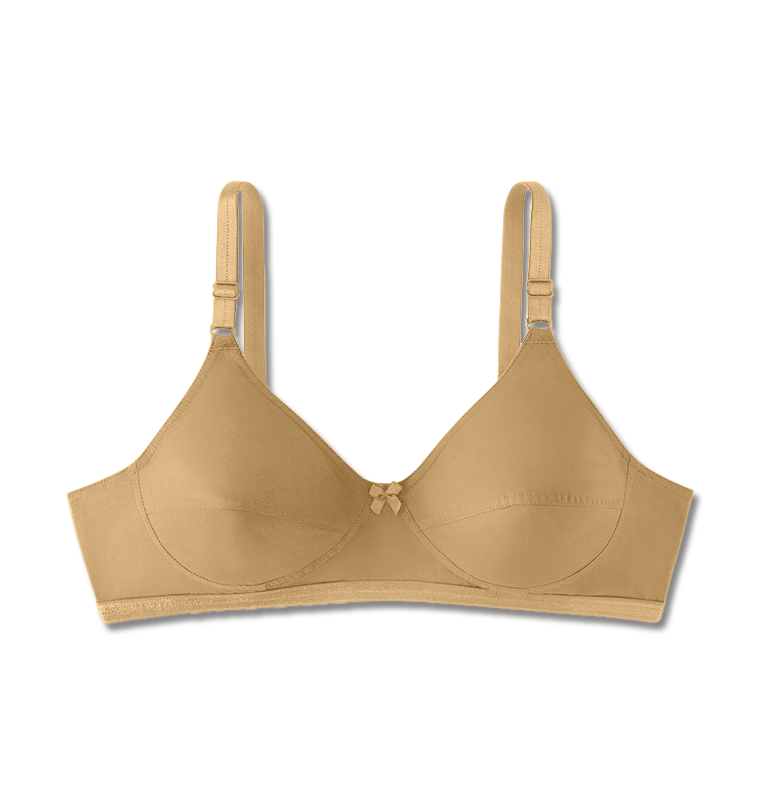 * The bra features seamed cups for a supportive fit. These seams help shape the bra and give structure, providing gentle yet firm support to the chest area.