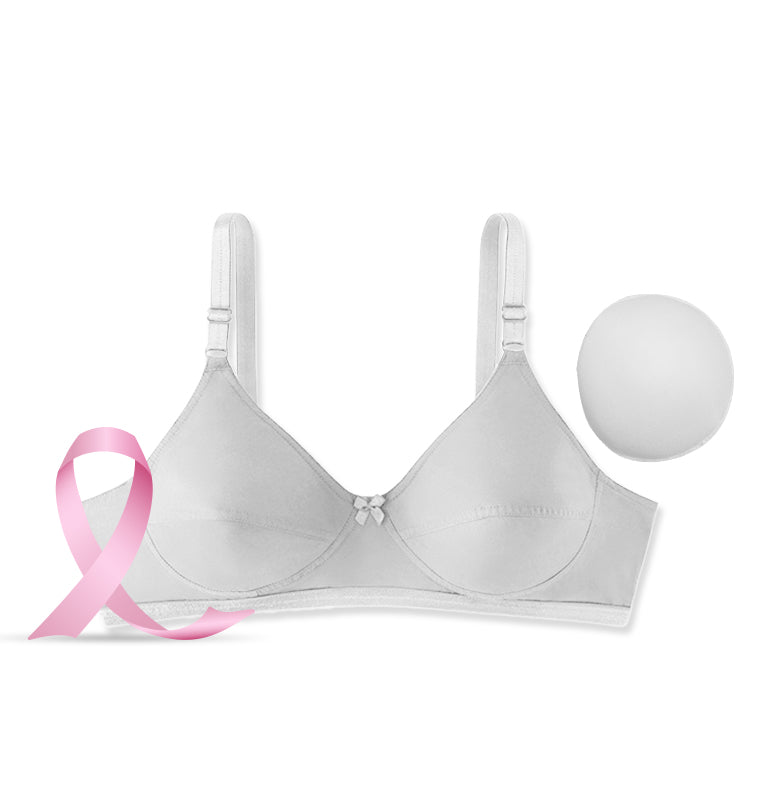 * On the inside of the cups, the bra has discreet pockets designed to hold foam breast inserts or prosthetic pads. These pockets are also made from soft cotton for added comfort and ease of use.