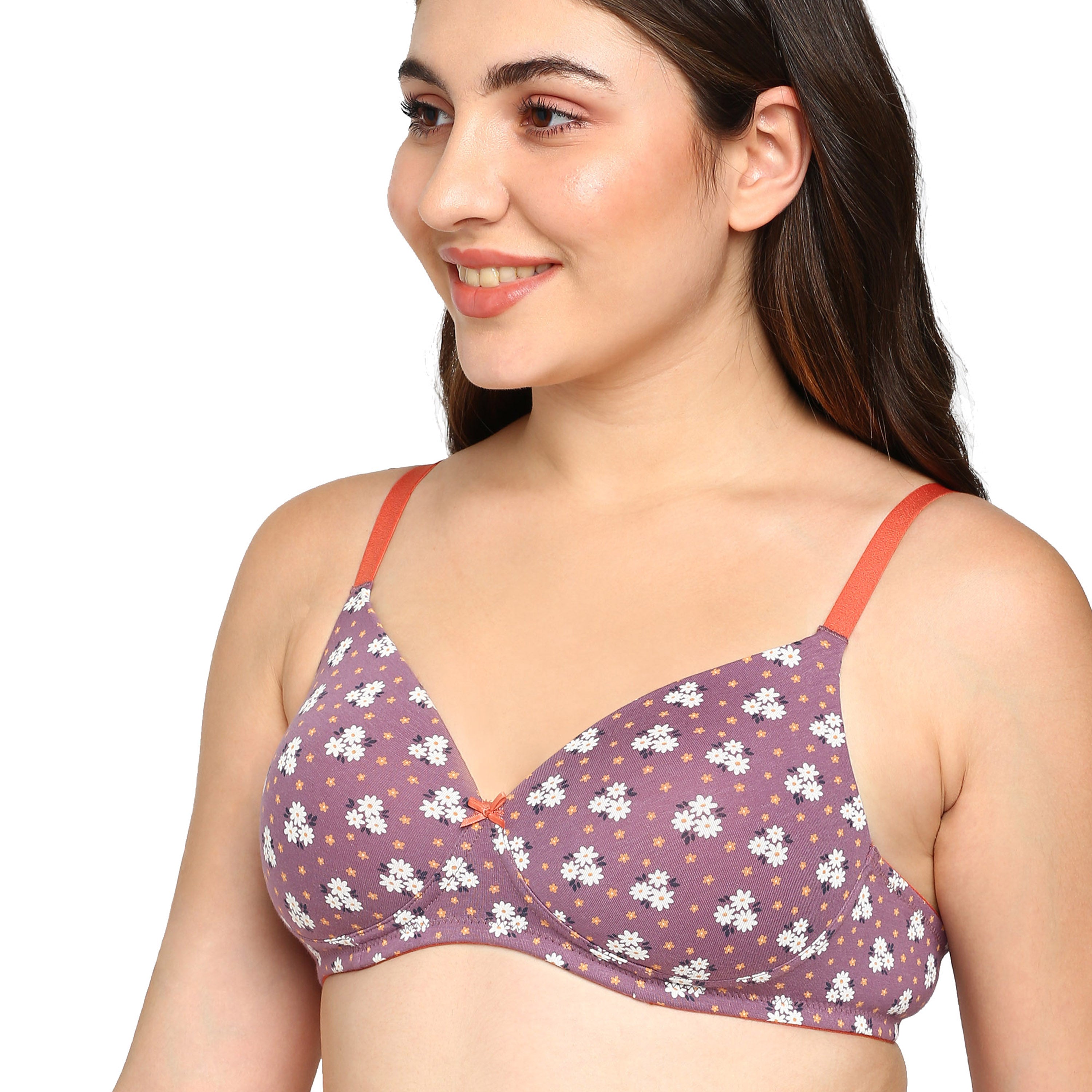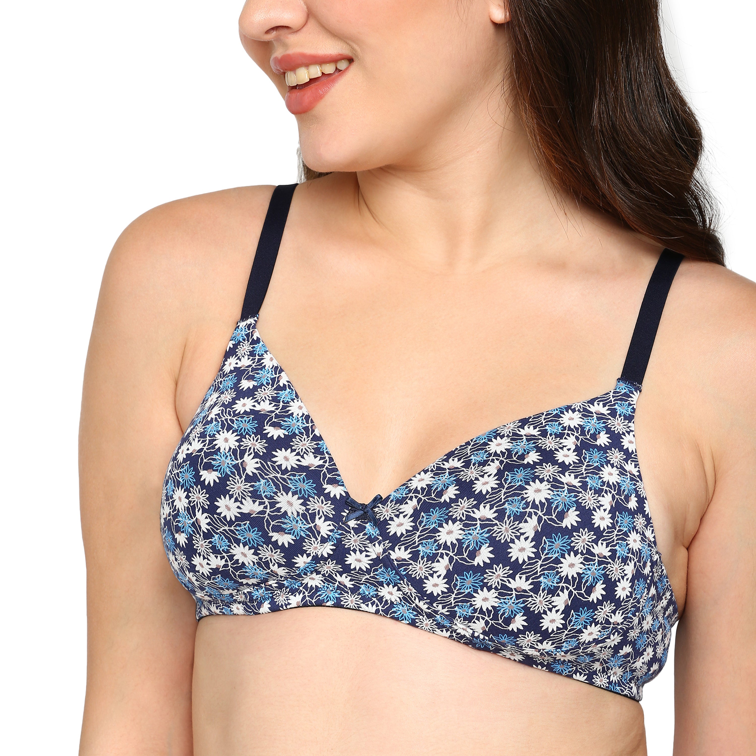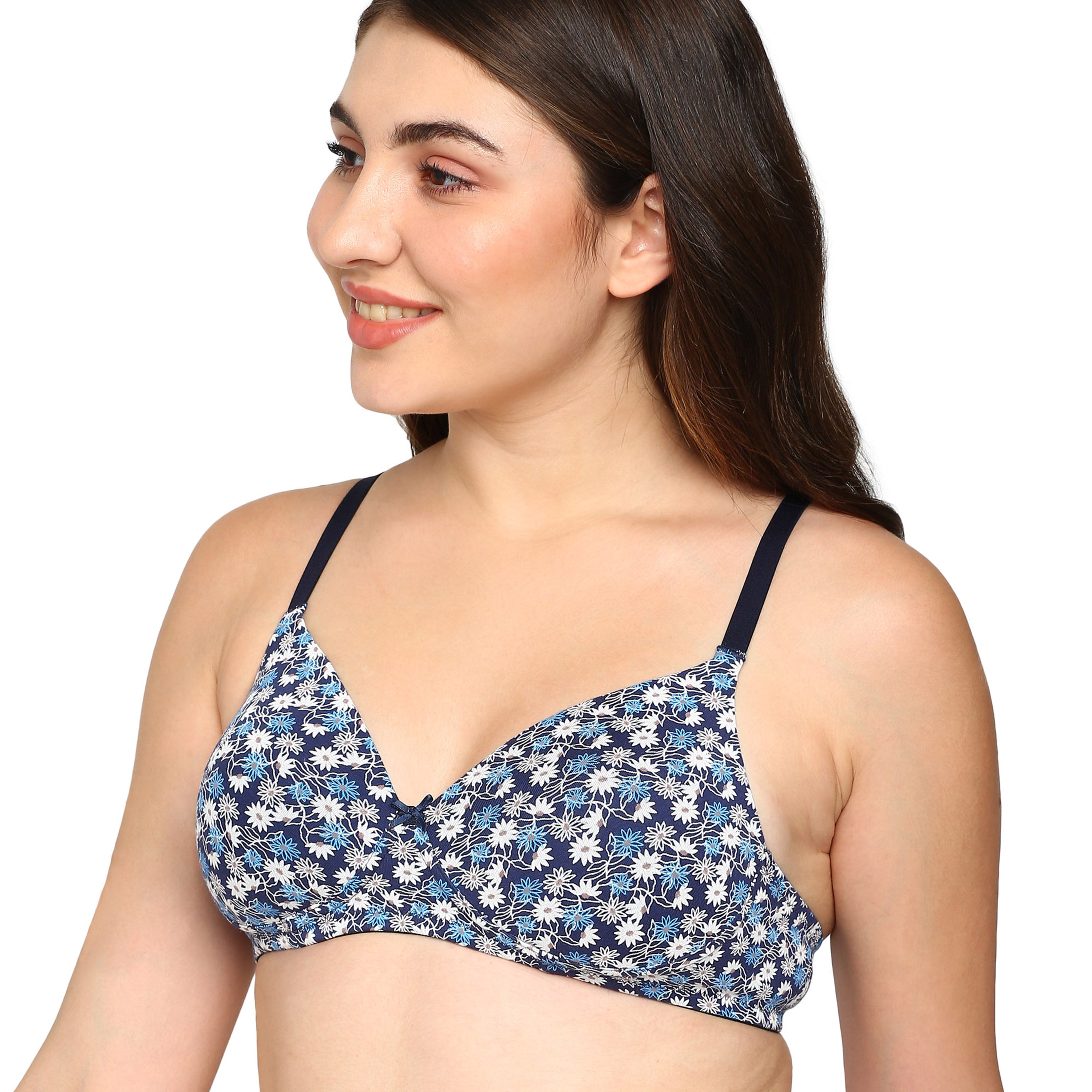 - Lightly padded cotton-stretch bra ensures breathable comfort and flexibility for everyday wear.