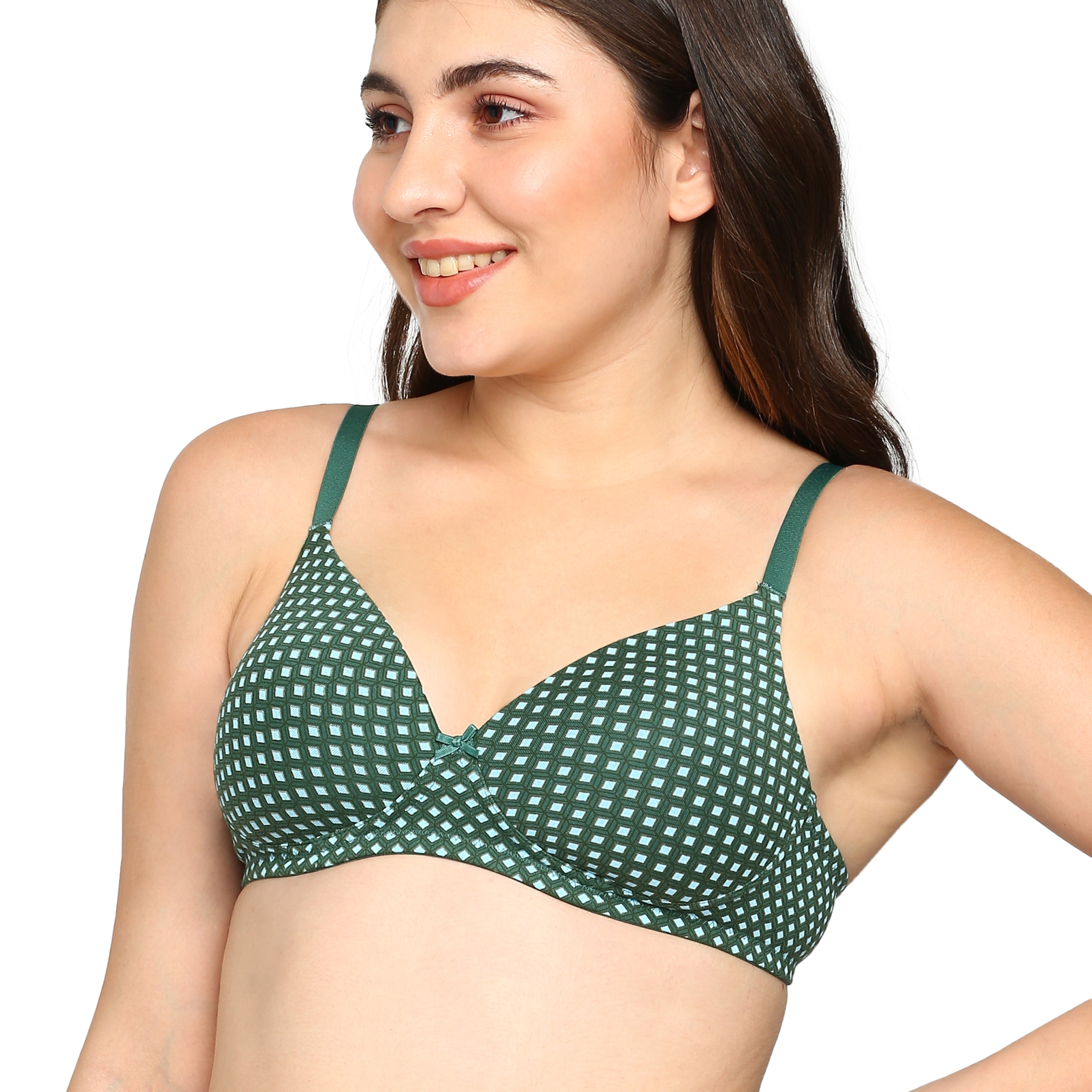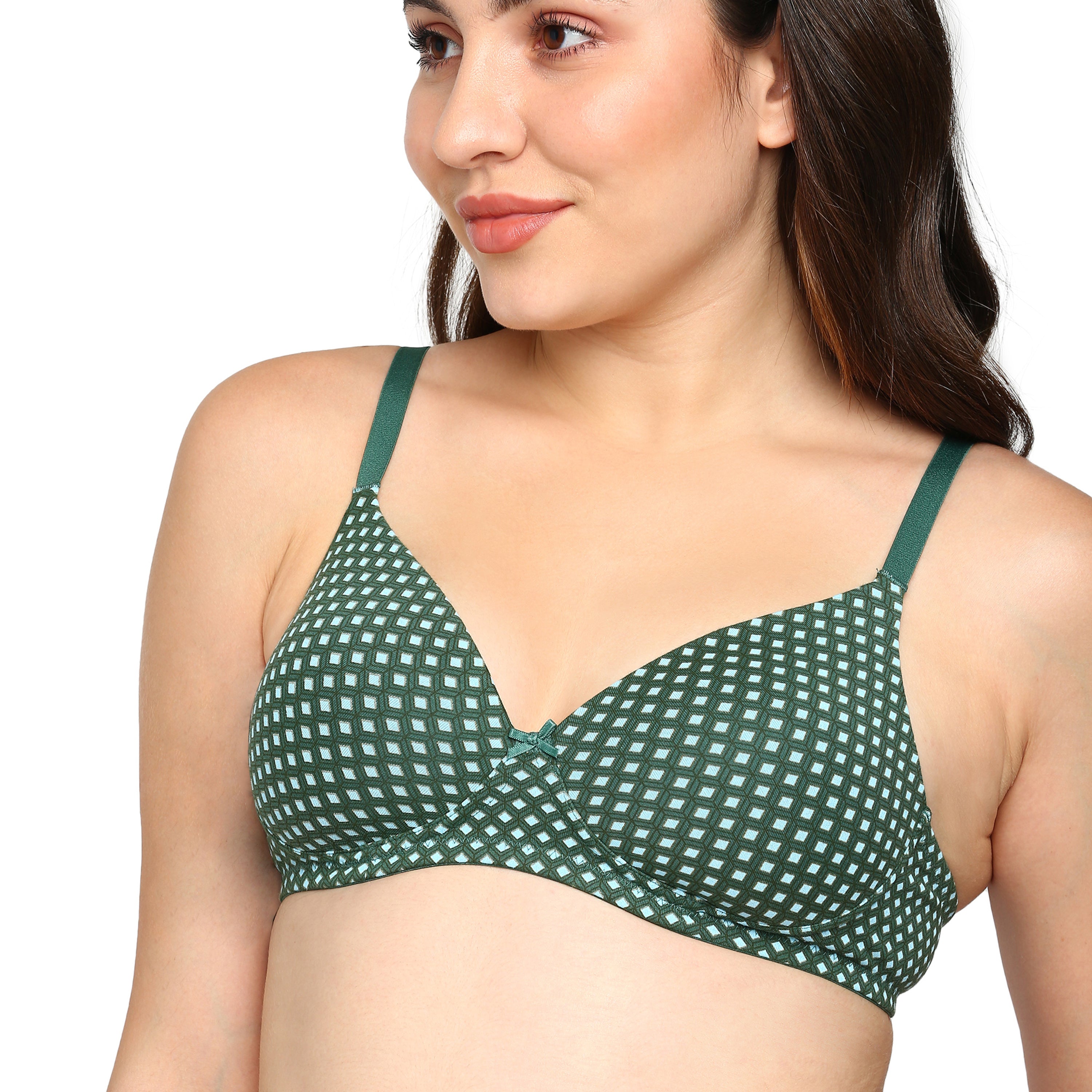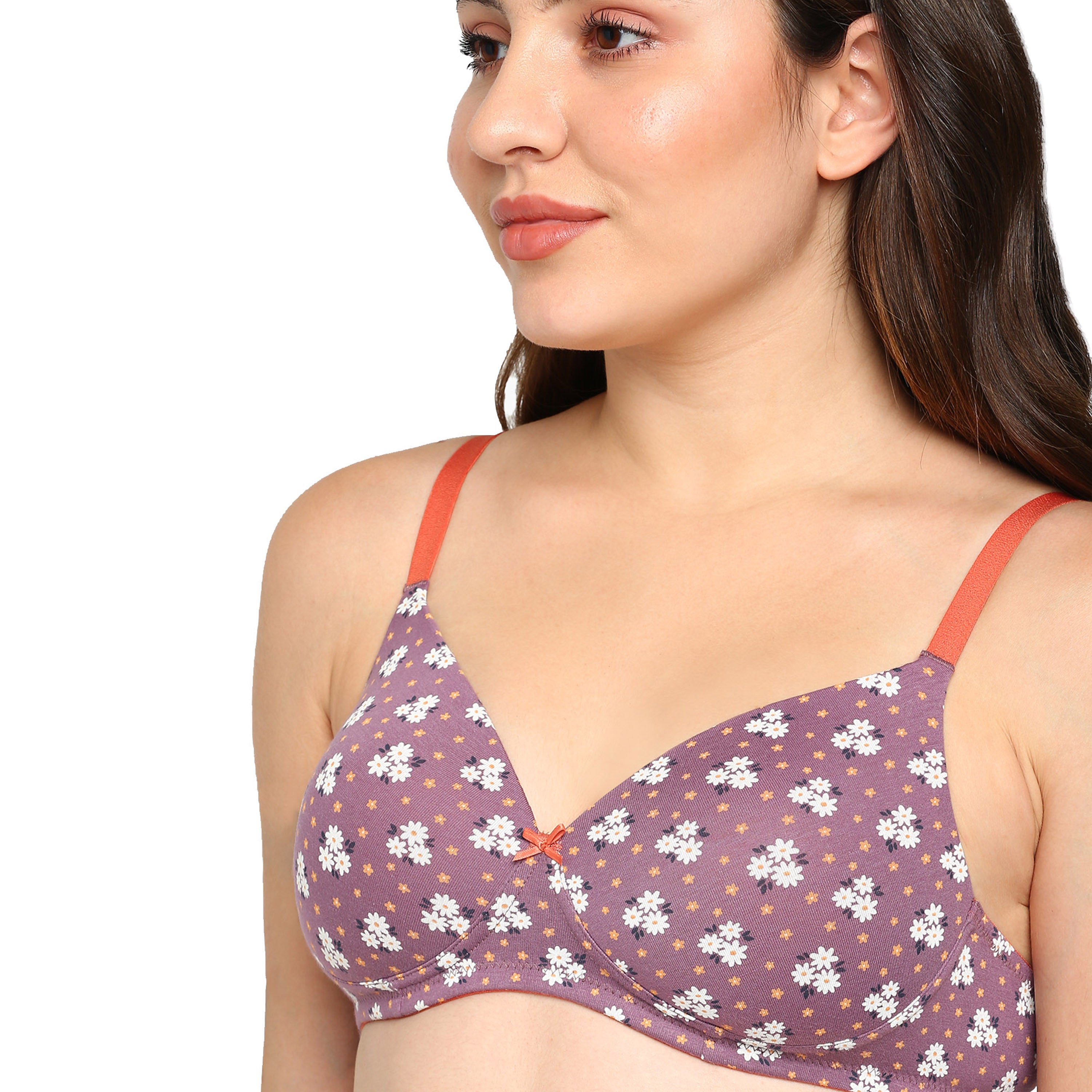 - Lightly padded cotton-stretch bra ensures breathable comfort and flexibility for everyday wear.